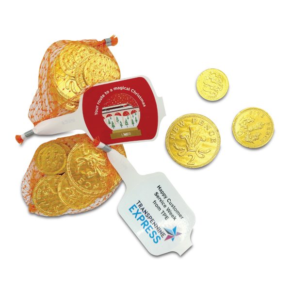 Our Nets of Chocolate Coins are a timeless and cost-effective promotional treat, perfect for a wide range of events and seasonal campaigns. Each traditional gold net contains a variety of delicious milk chocolate coins, embossed with classic gold or sterling designs and wrapped in shiny foil for an eye-catching finish.